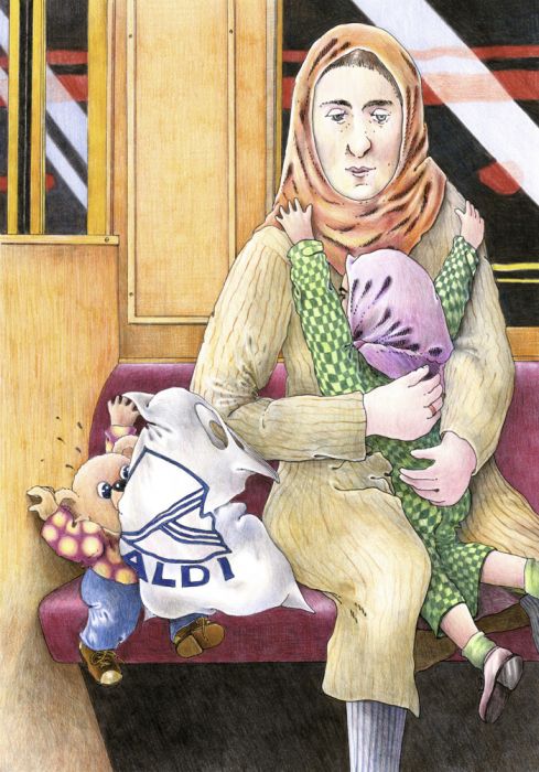 Illustration für das Kinderbuch Phillip und Elling in der U-Bahn